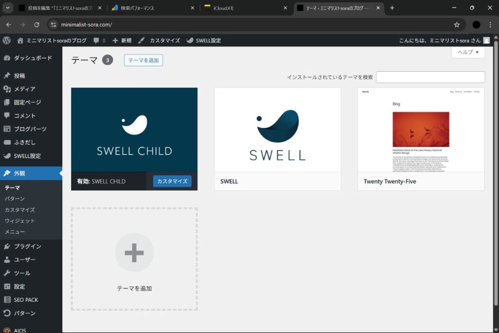 ちなみに、当ブログはWordPressを利用していて、ブログテーマは「SEWLL」を使っている。