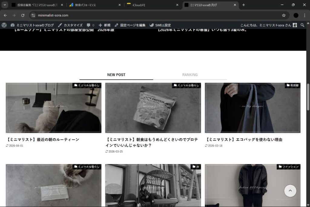 当ブログでは、おしゃれな見た目でありながら、読み込み速度が速くサクサク動作するという、両者の両立を目指している。