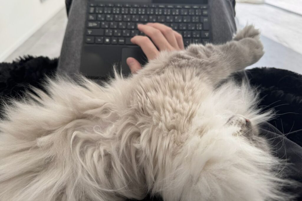 毎日ソファの上でお昼寝しているし、人間が座っていると、猫も甘えるように寄ってくる。飼い主はありがたく毎日モフらせてもらっている。最高にかわいい。