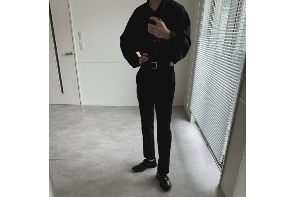 2025年秋も着回しなどない、気合の1コーデのみとなっています。男なら黙って最高の1着のみで勝負。色はもちろんオールブラック。