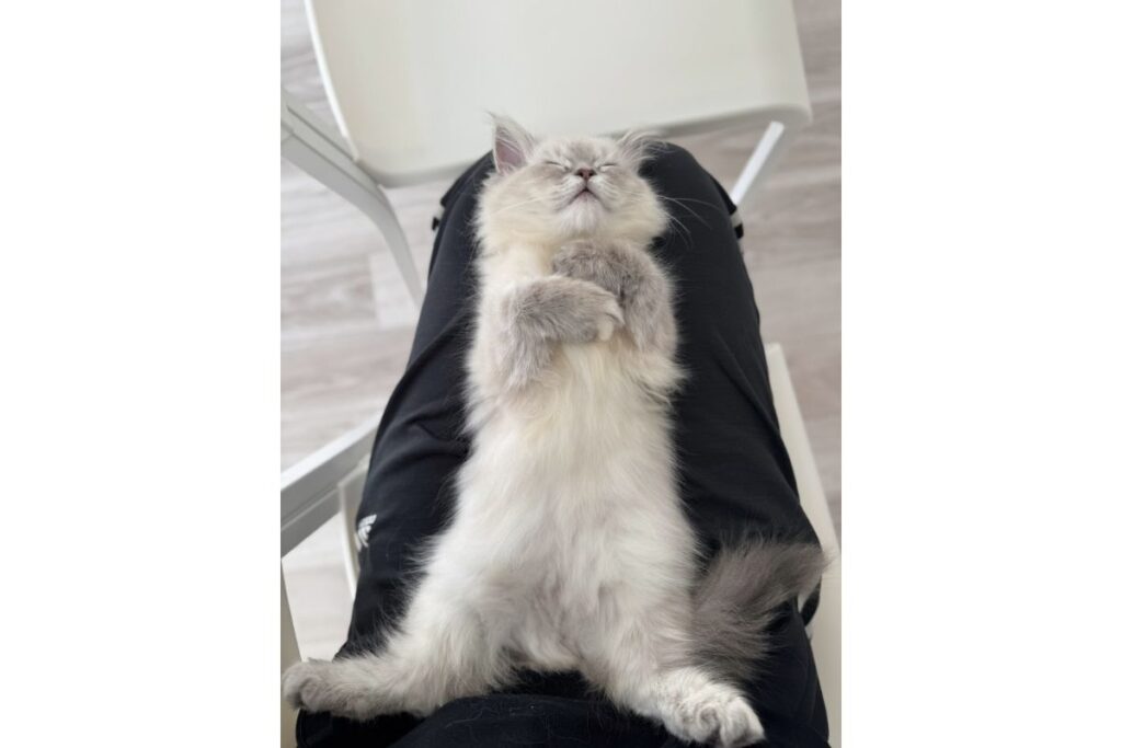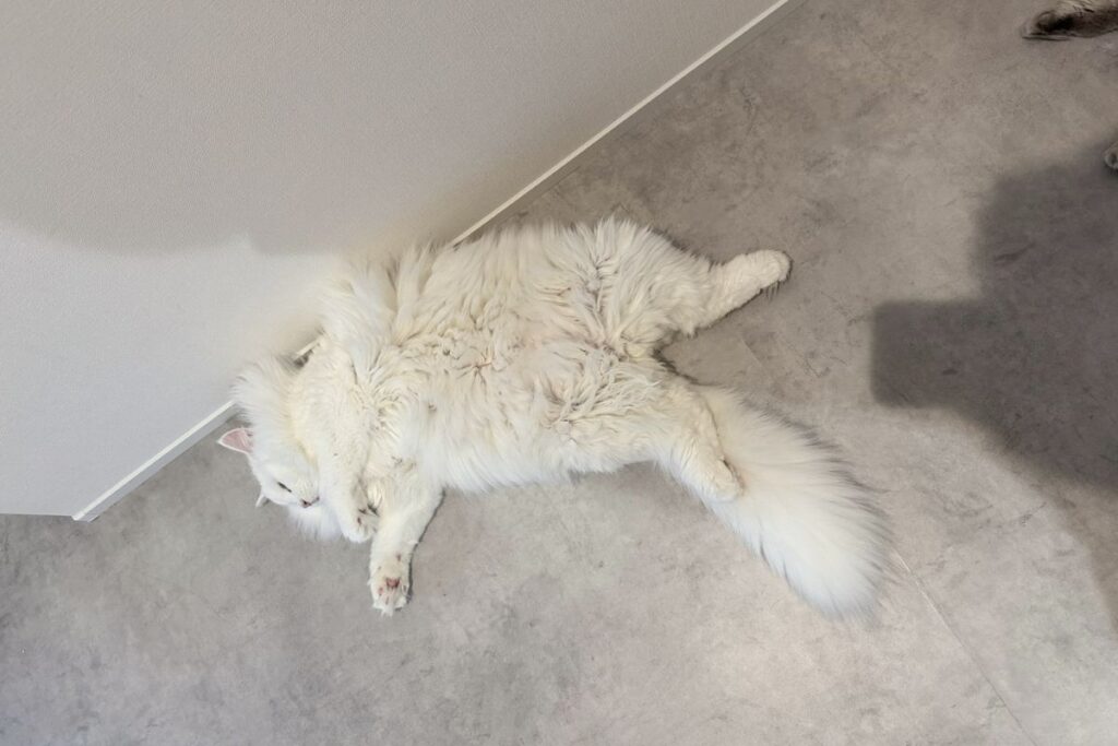 これは朝のご飯くれのポーズ。なぜか毎回仰向けで催促する。かわいい。