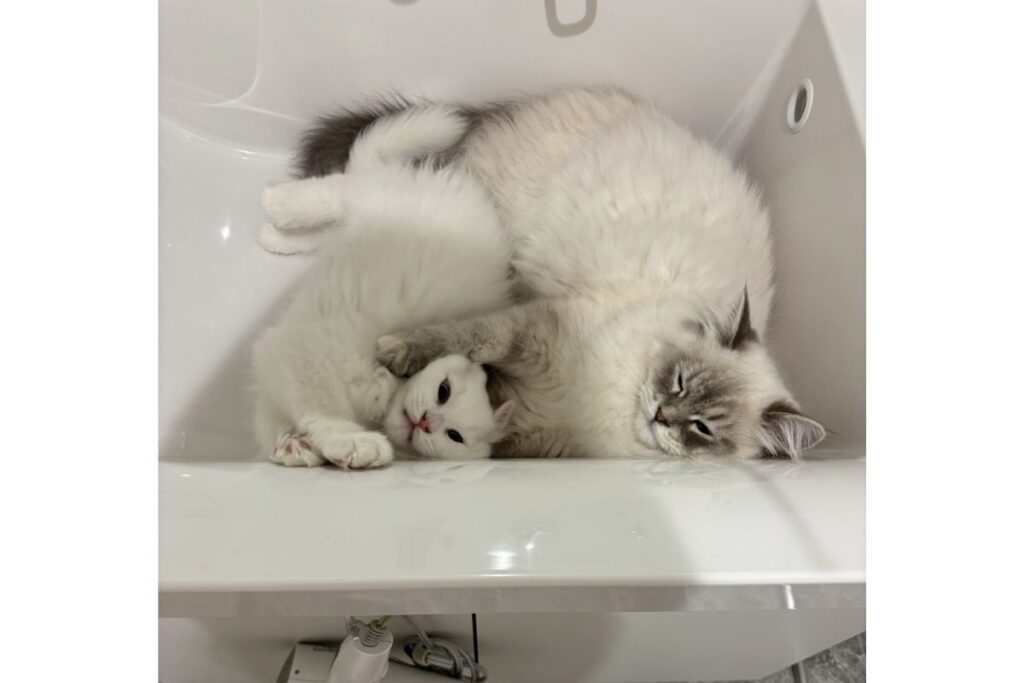 しかし、この後あっさりと仲良くなって安心した。同じポーズで寝ているのを見たとき、感動し涙が流れそうになった。