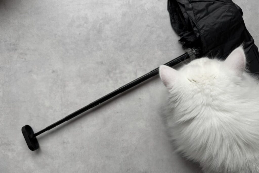 傘の持ち歩きがさらに快適になってご満悦である。これで雨の日も日差しが強すぎる日も、外出する気持ちが奮い立つことを期待している。