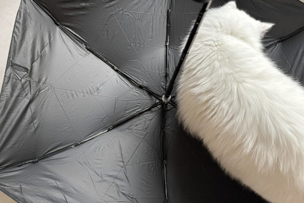 しかし、私はどちらかというと小さめ贔屓なので、雨の日などはこれでは小さいと思う人もいるかもしれない。そんな人はきちんとした雨傘を買うべきだろう。