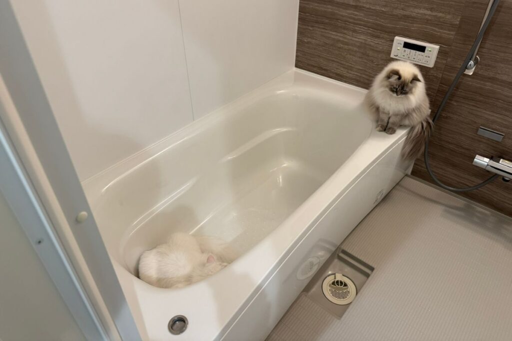 うちの猫は風呂にまでついてきたがるタイプ。ちょっとは水を恐れて欲しい。