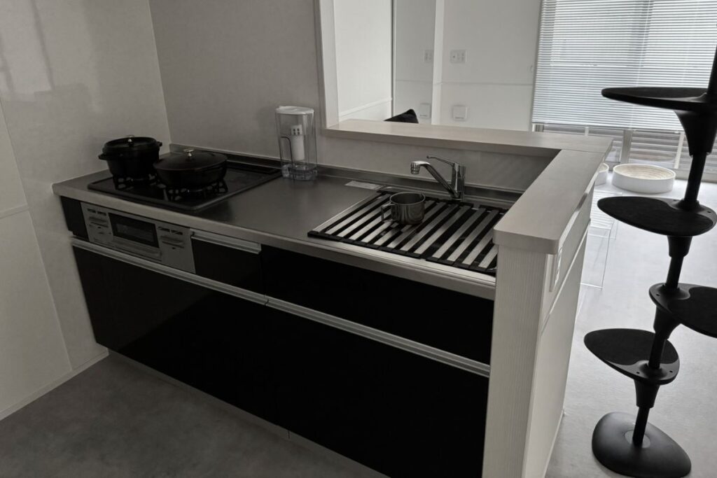 キッチン用品も限りなく少なくしている。常に出しっぱなしにしているのは、鍋と浄水ポットだけ。