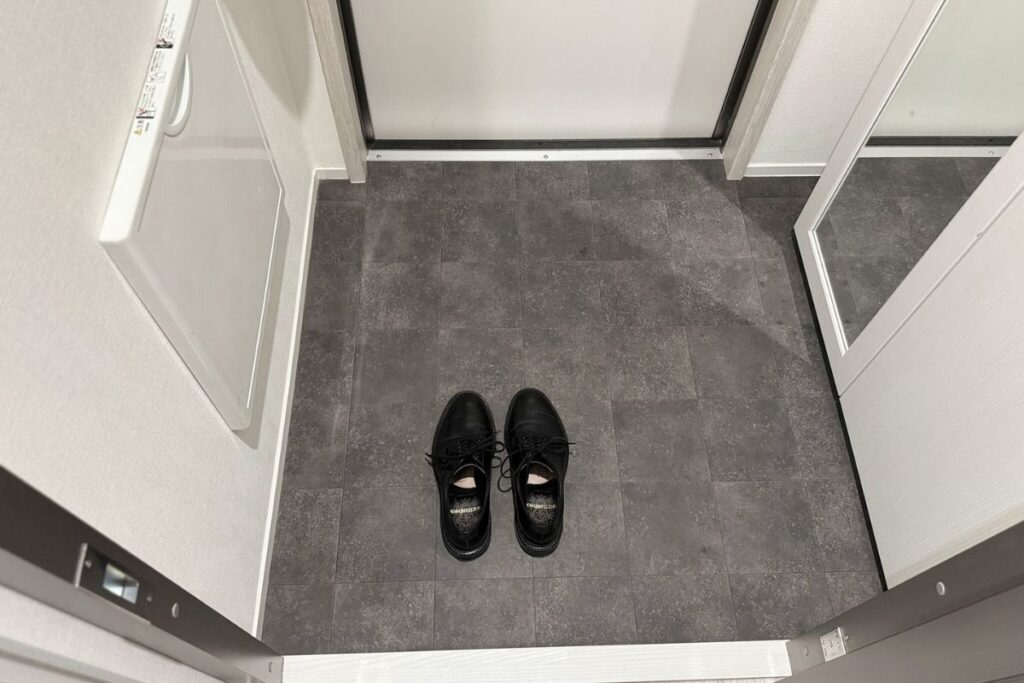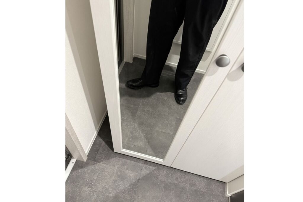 シューズクローゼットの扉に鏡が付いていて玄関を出る前に鏡で身だしなみをチェックできる。こちらは結構ありがたい装備で重宝している。