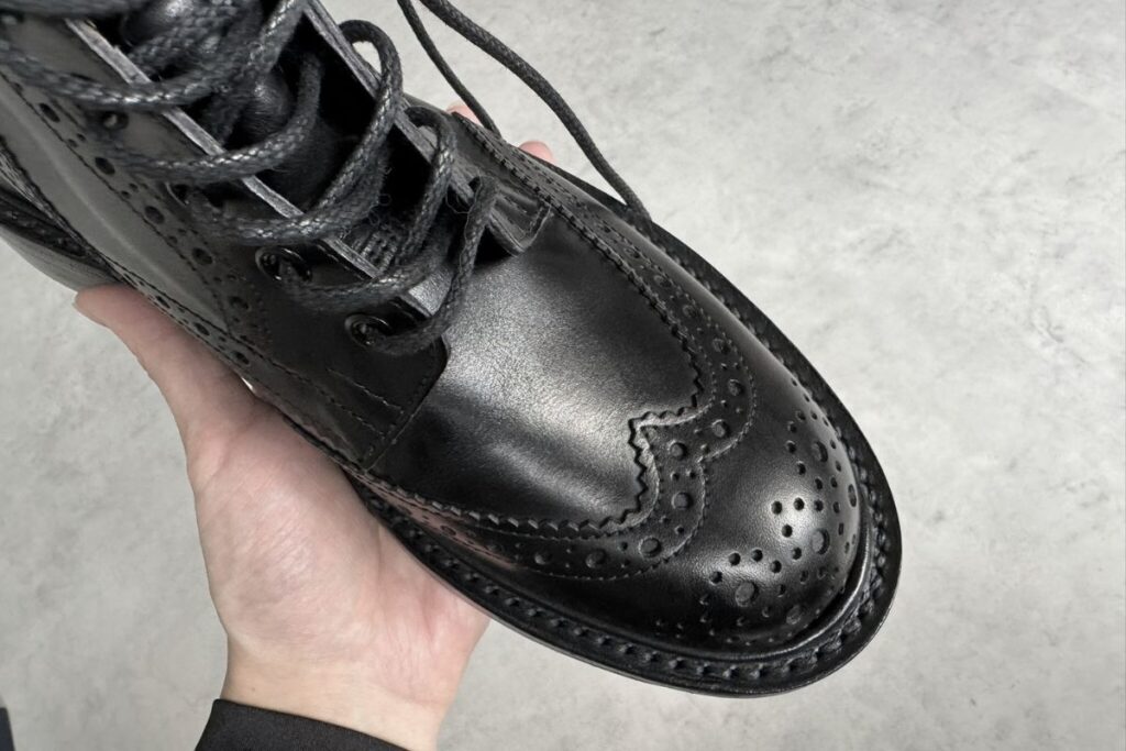 メダリオンは写真で見るより実物を見る方がカッコよく見える。カジュアル感を演出する装飾であるが、ブーツに施されると、むしろキレイ目な感じに映る。無骨なシルエットと華やかさが融合し、絶妙なバランスを保っていると思う。