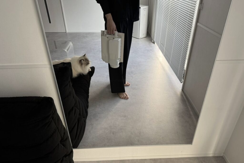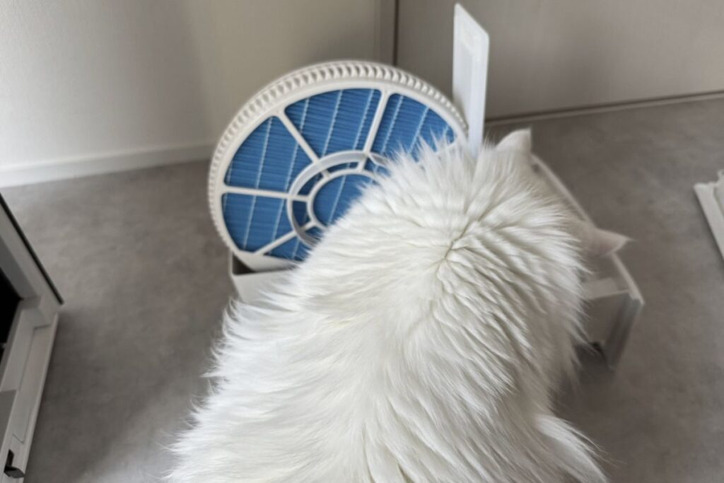 上の写真を見ると本体は結構小さく見えるが、実際はめちゃくちゃデカい。うちの猫がデカいので相対的に小さく見えるだけ。存在感はめちゃくちゃあるので、コンパクトなモデルを探している人には向かない。